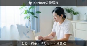 fp-partnerは、比較だけで決めるより、料金の仕組み・向いている人・注意点を一通り見てから判断する方が納得しやすいです。申込条件や特典の適用条件は変わることもあるため、最後は公式ページで最新情報を確認しておくと安心です。